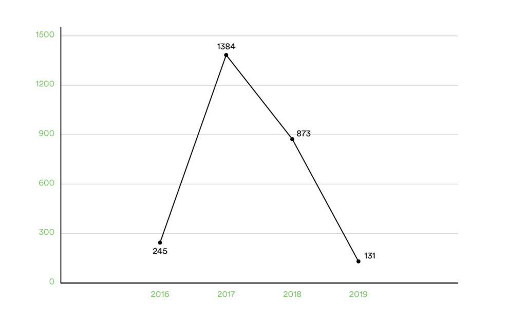 Casos de zika reportados por Cuba entre 2016 y 2019 (Fuente: Elaboración propia con datos de la Organización Panamericana de la Salud).