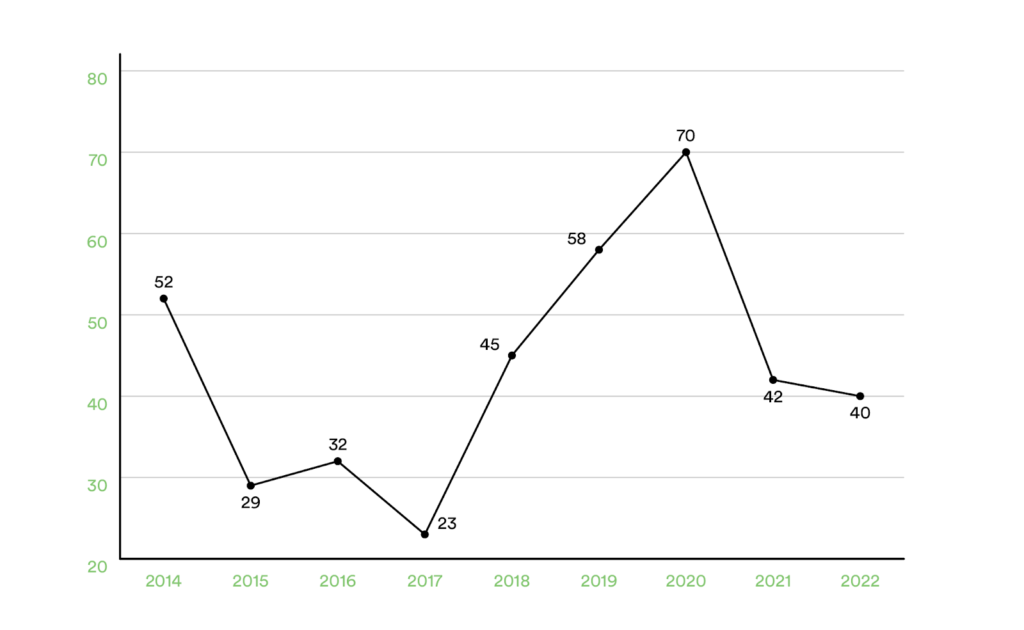 Casos letales de leptospirosis en Cuba entre 2014 y 2022 (Fuente: Elaboración propia con datos de la Revista Cubana de Higiene y Epidemiología).